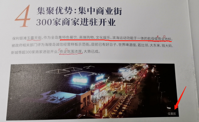 虚假宣传二:玉露天街集特色餐饮、高端购物、文化娱乐、滨海运动功能于一体的航母级商业地标(实际该地产并无任何的商业用地,并无开发商业的能力)