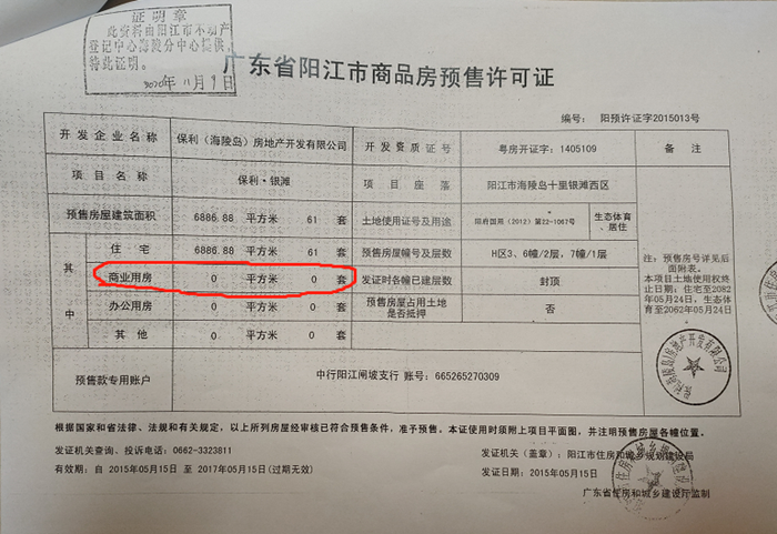 经过调查证实,该公司开发建设的“海陵岛保利•银滩H区(玉露天街)”项目涉及的全国各地购房者数量多,影响面范围广,受害者业主已提交相关材料至广东省阳江市人民法院。
